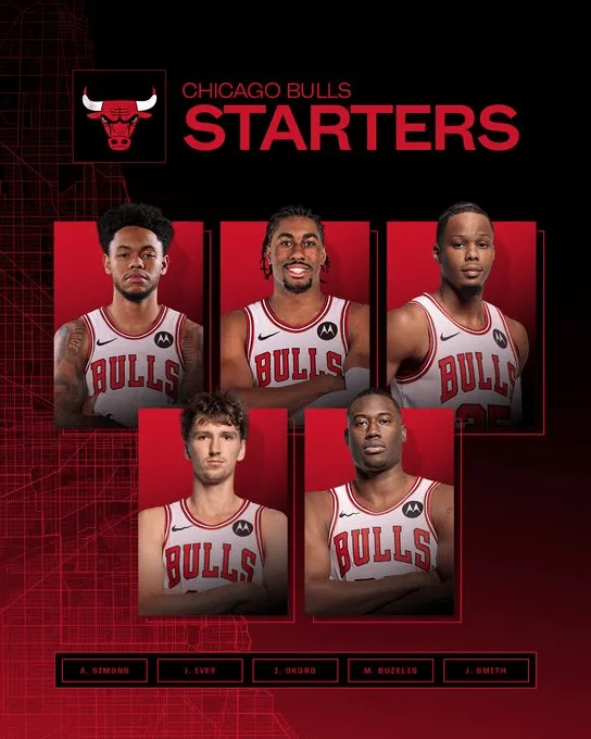 赛前,公牛公布了本场比赛首发阵容: